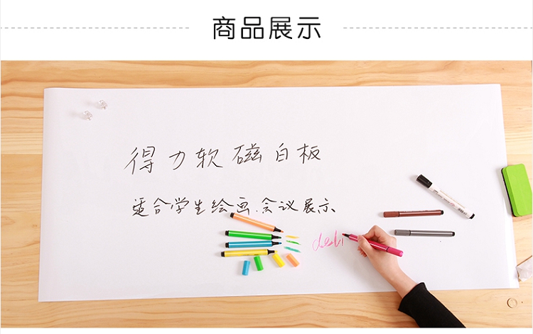 得力(deli) 8710 磁性軟白板墻貼掛式辦公家用軟鐵白板0.6*450*1000mm(無膠)