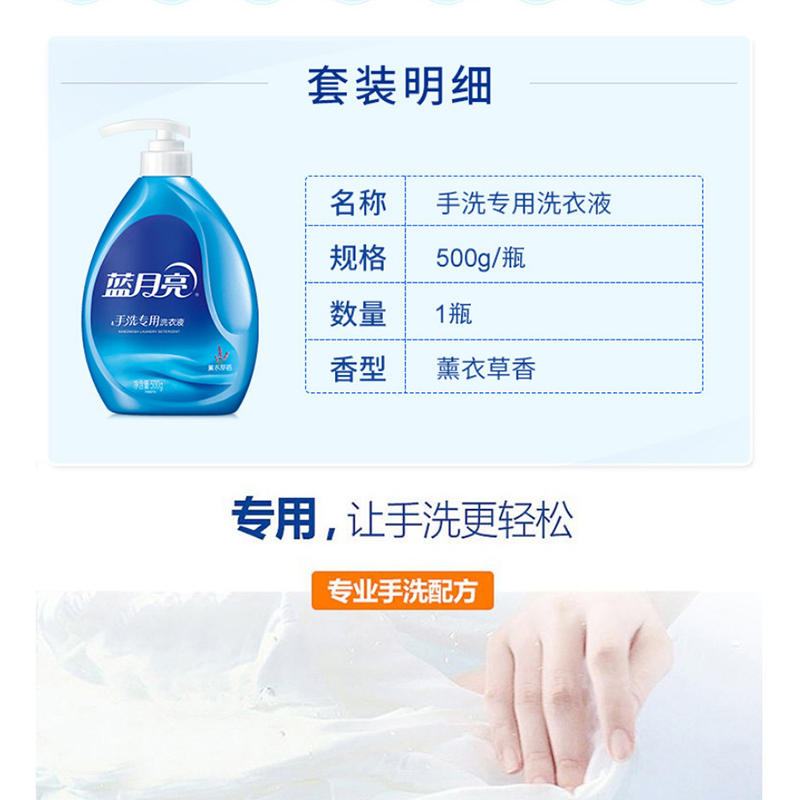 主體 凈含量(kg) 0.5kg 包裝清單 藍月亮 手洗專用洗衣液(薰衣草香)500g/瓶x1