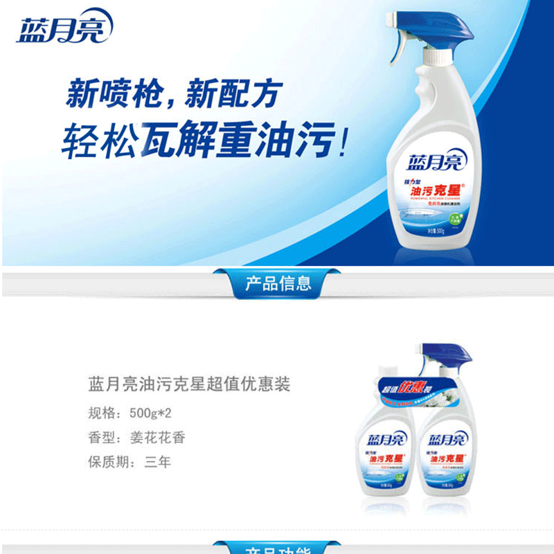 藍(lán)月亮強(qiáng)力型油污克星500g+強(qiáng)力型油污克星瓶補(bǔ)500g