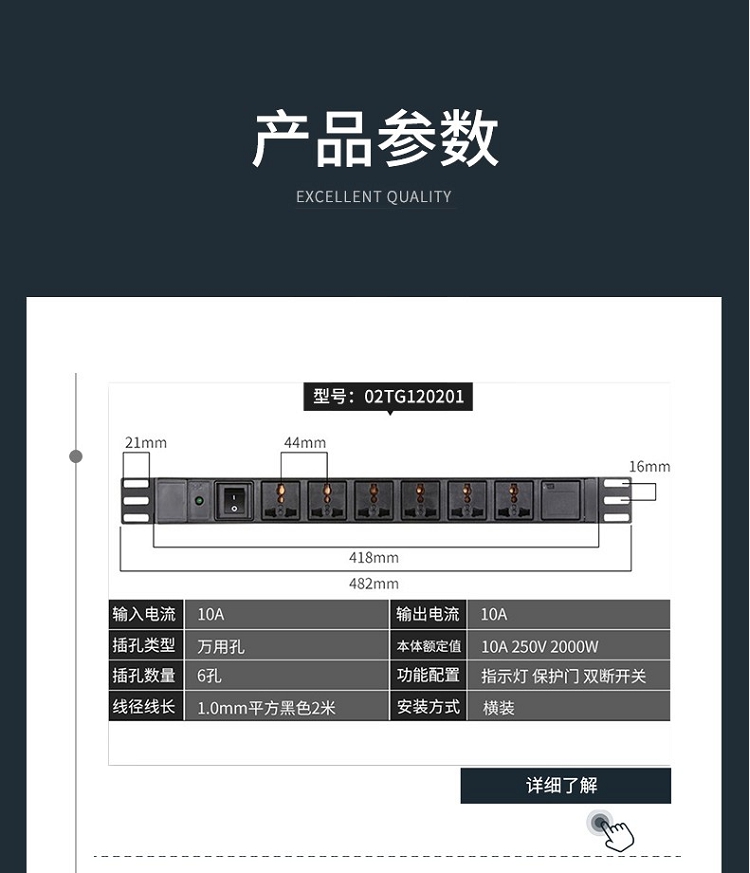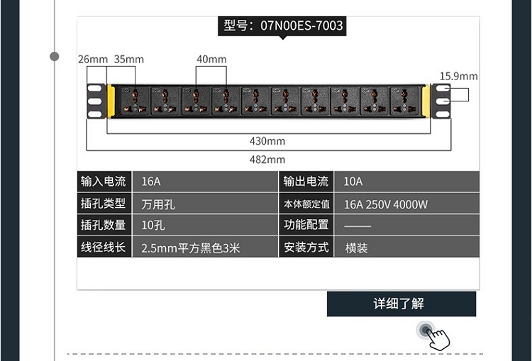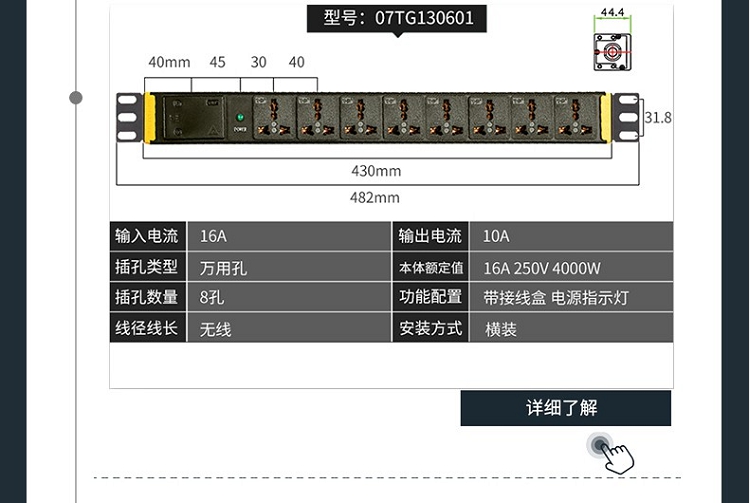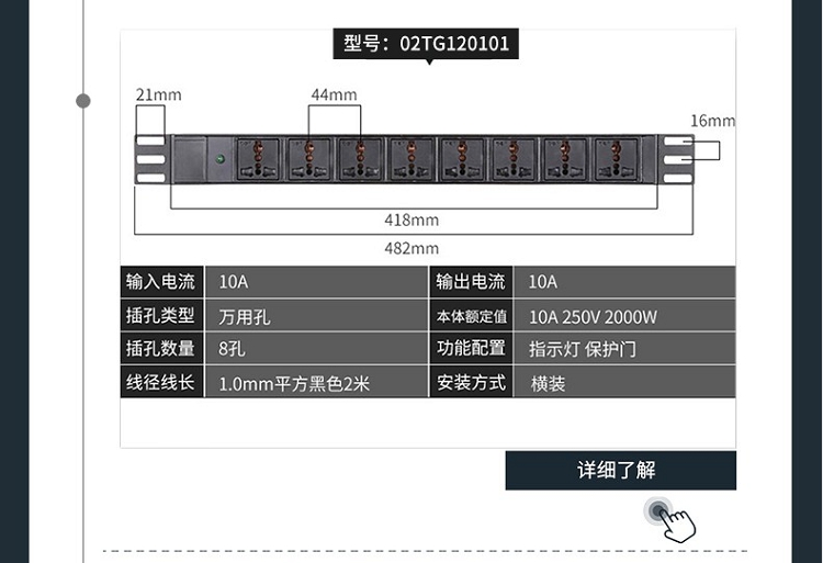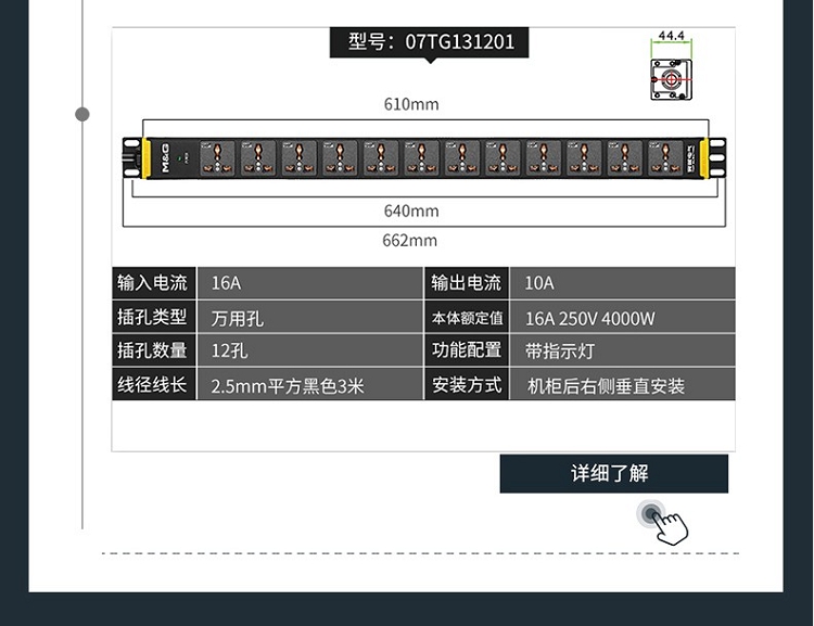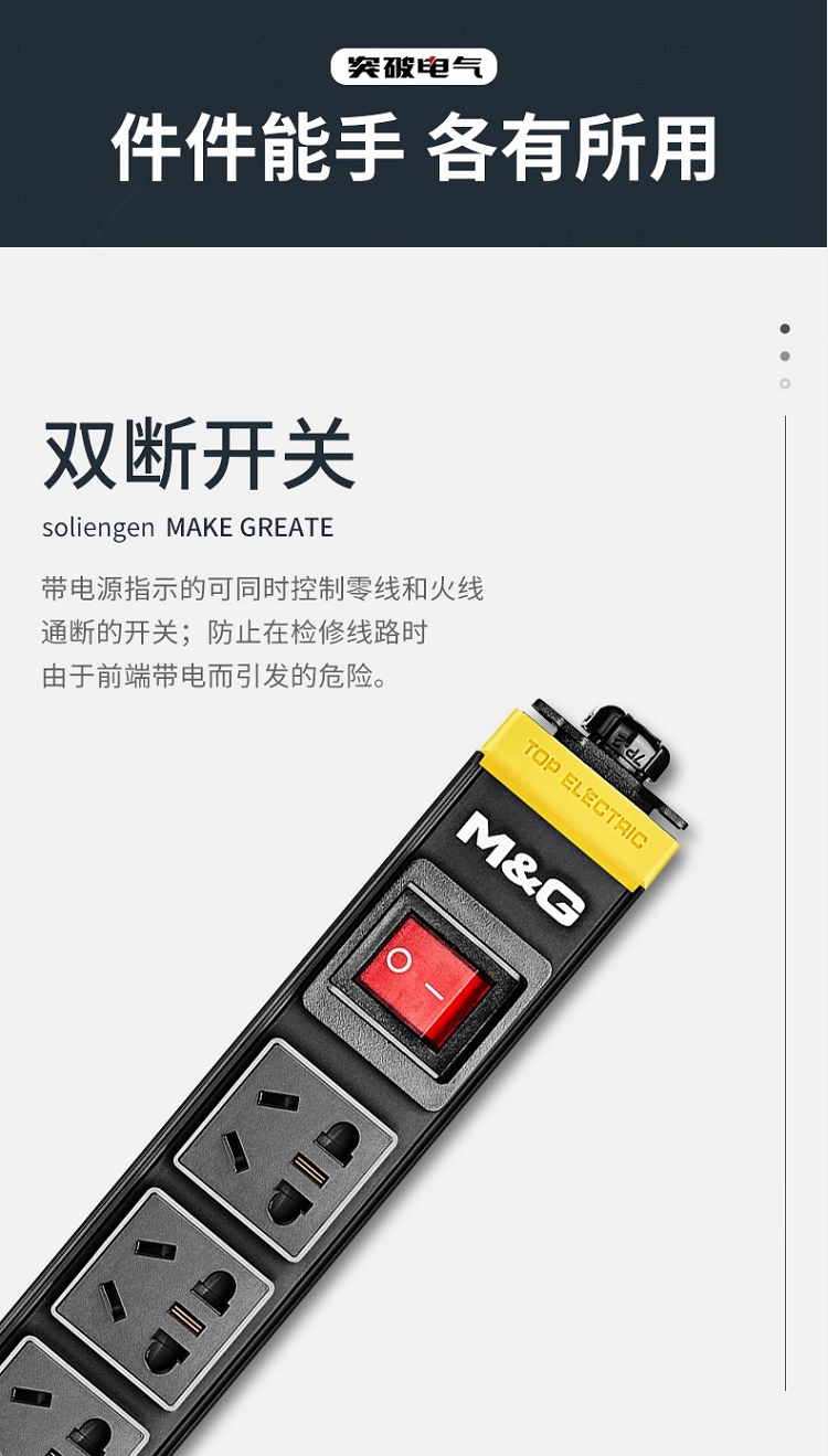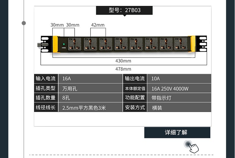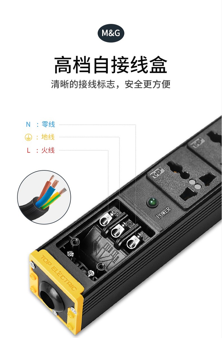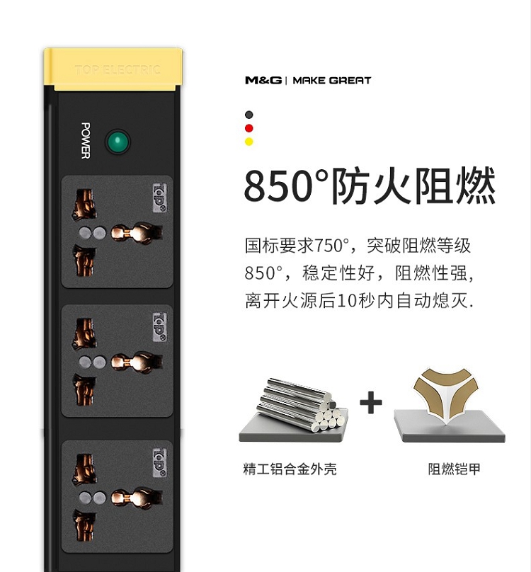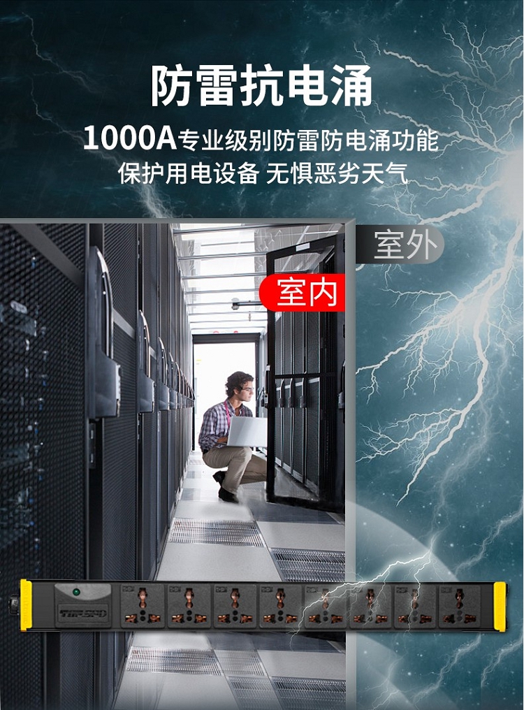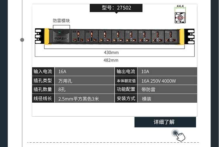 突破(M&G)PRO PDU系列27S02 8位10A插孔 3米線防雷抗電涌PDU插線板