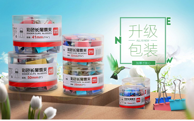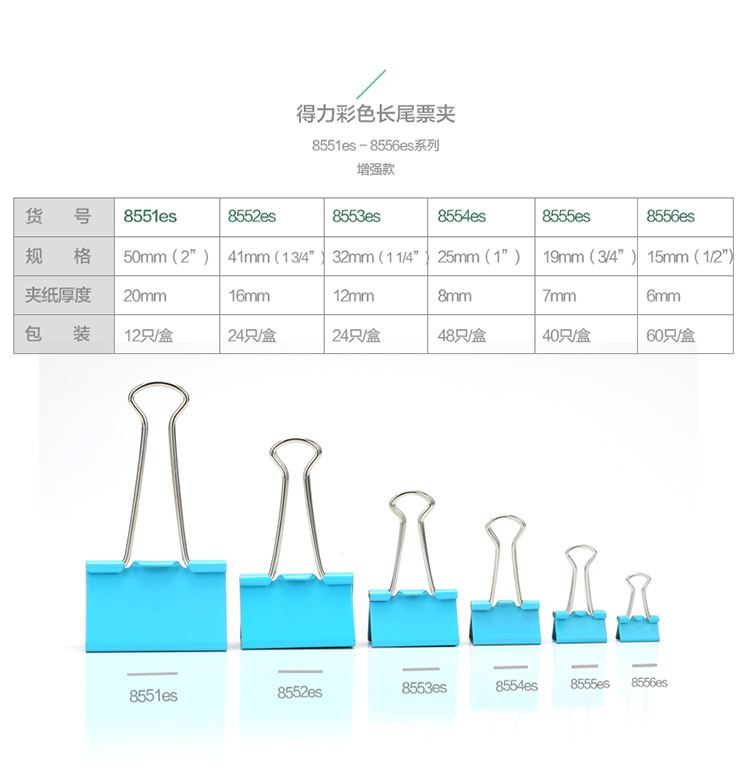 得力(deli)19mm彩色長尾夾5# 8555ES