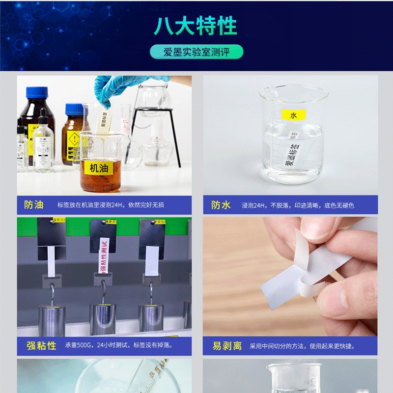 防水、防油、耐刮、耐磨、防腐蝕、易剝離、不易褪色、耐高低溫、;適用機型:兄弟標簽機