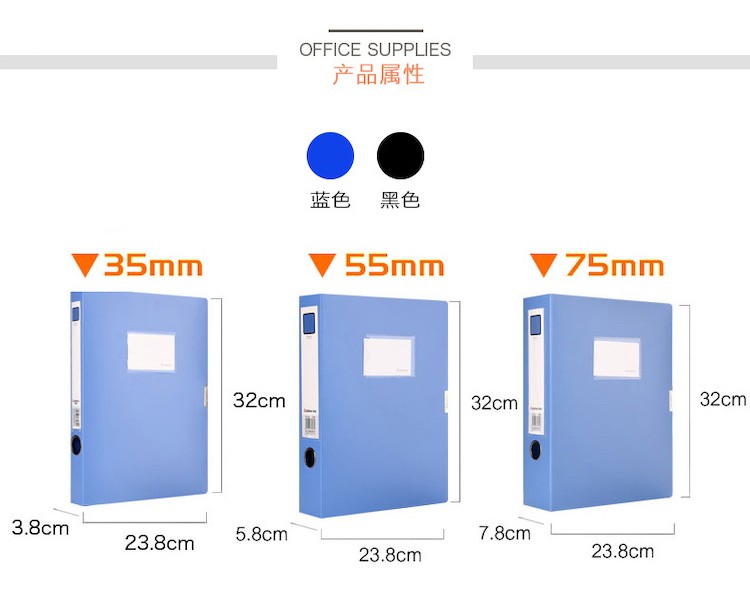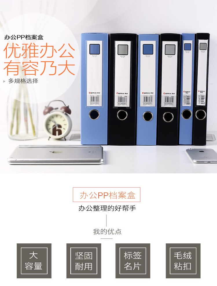 齊心(COMIX) HC-75 辦公PP檔案盒 A4 75mm/黑色