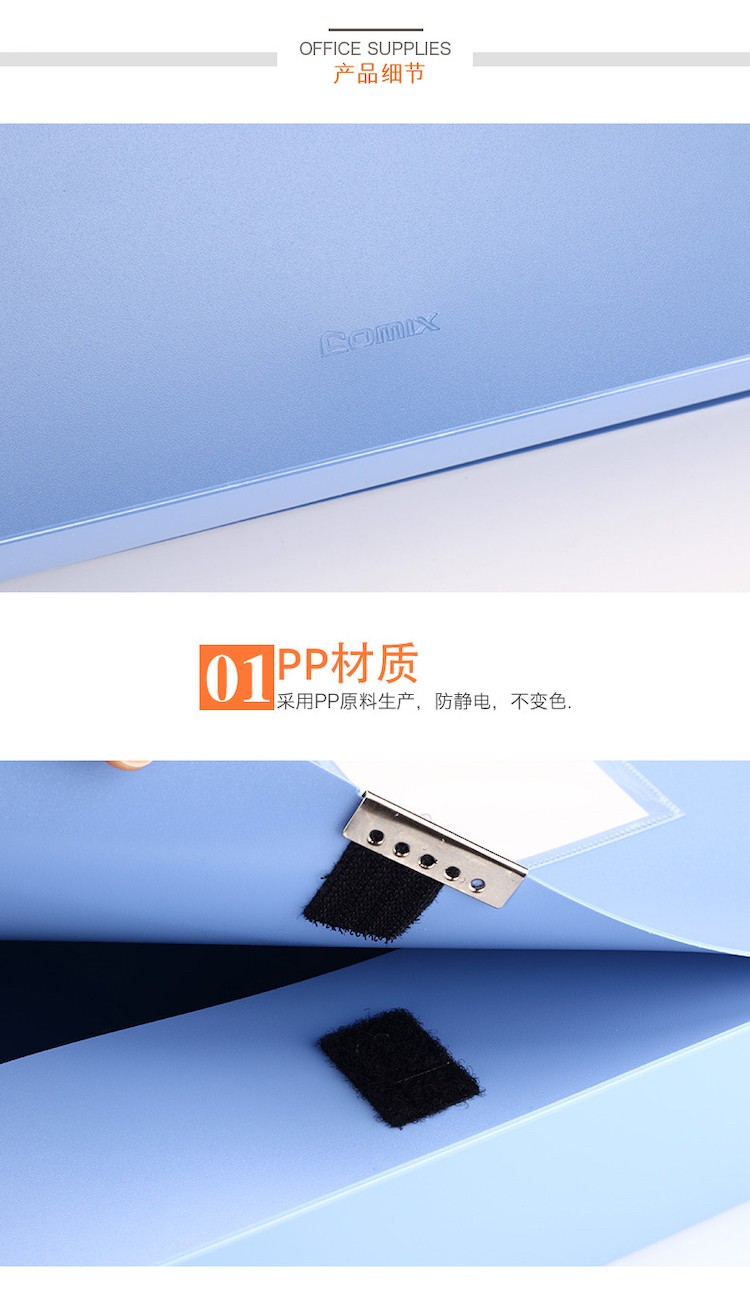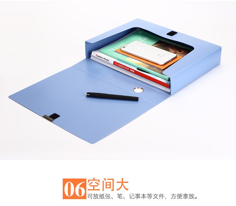 齊心(Comix) 75mm加厚檔案盒/A4文件盒/鯤鵬系列粘扣塑料資料盒 辦公用品 灰藍(lán)A1259