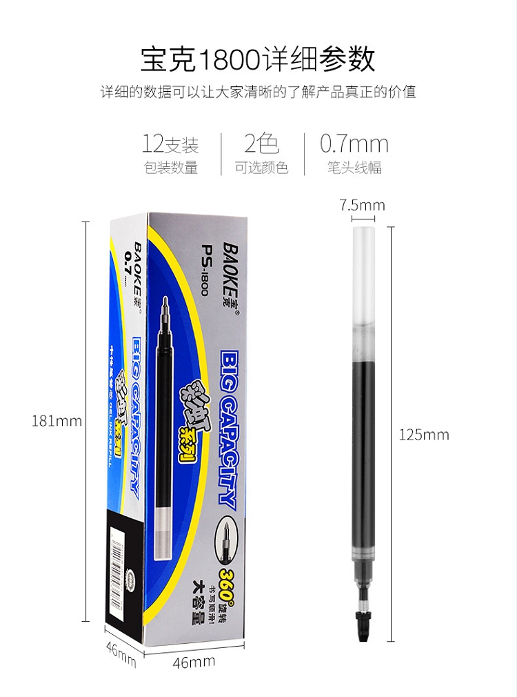 寶克(BAOKE)簽字筆芯PS-1800/0.7mm