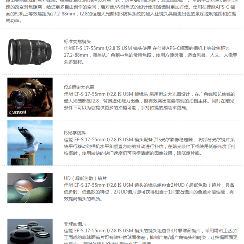 佳能(Canon) EF-S 17-55mm f/2.8 IS USM 標(biāo)準(zhǔn)變焦鏡頭套裝