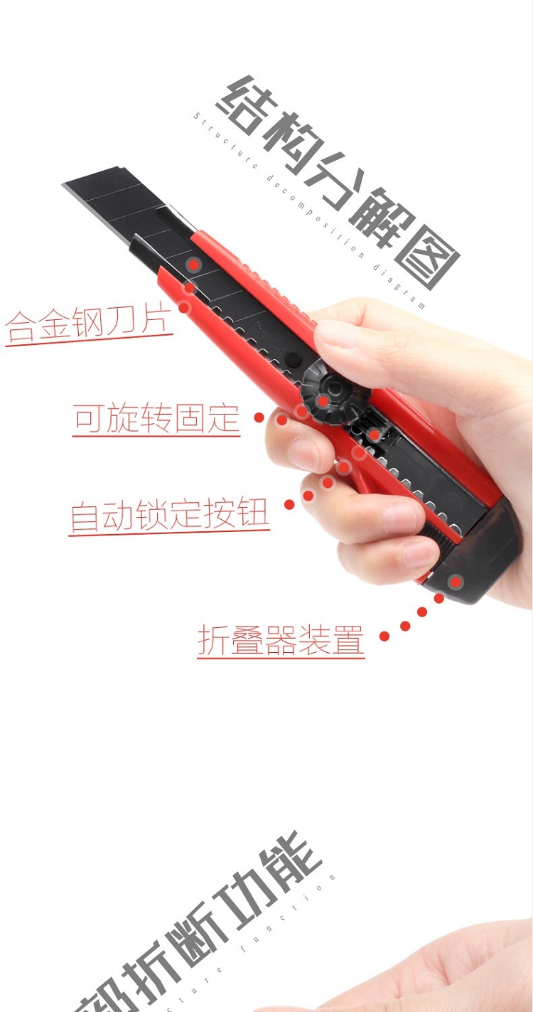 齊心(COMIX) B2805 18mm 高碳鋼鋒利美工刀 壁紙刀顏色隨機(jī)