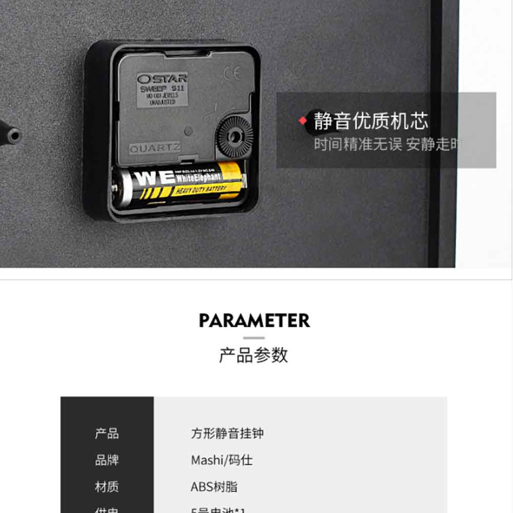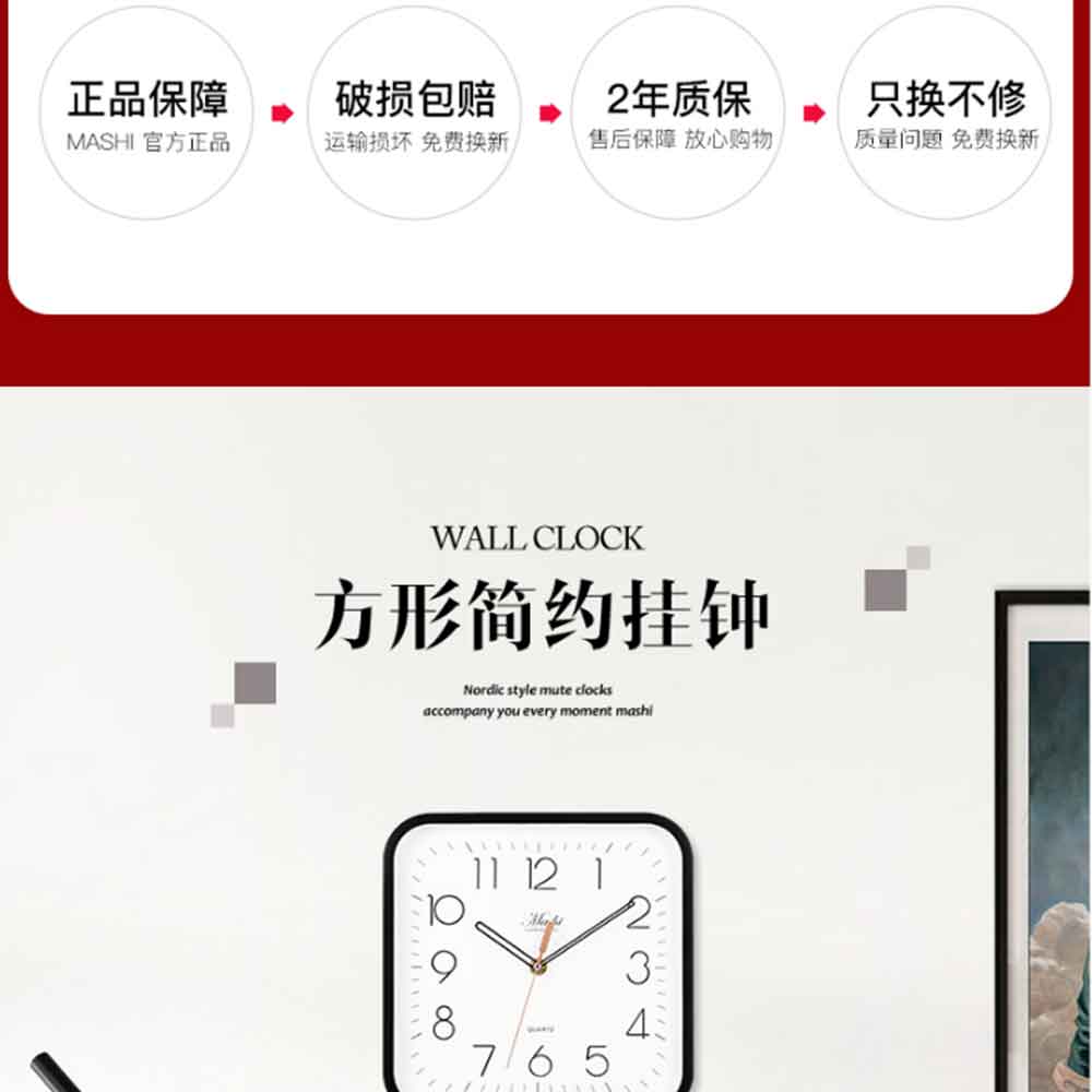 碼仕 掛鐘鐘表7244方形黑
