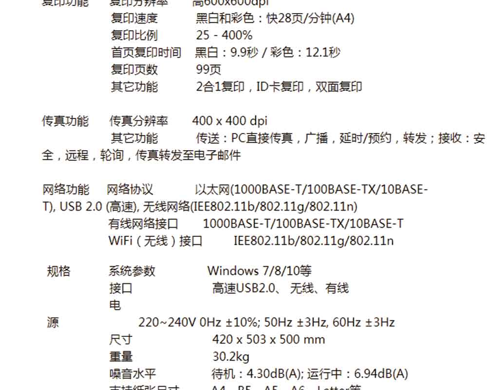 (打印、復(fù)印、掃描、傳真、自動(dòng)雙面)