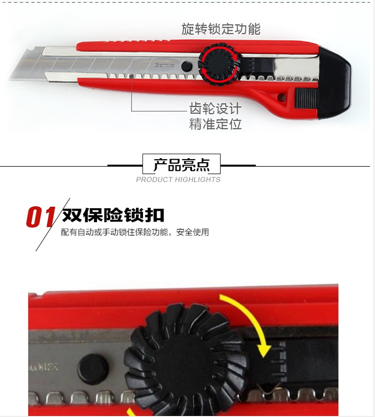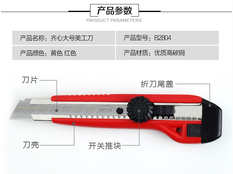 齊心(COMIX) B2804 18mm大號加強定位美工刀 壁紙刀顏色隨機