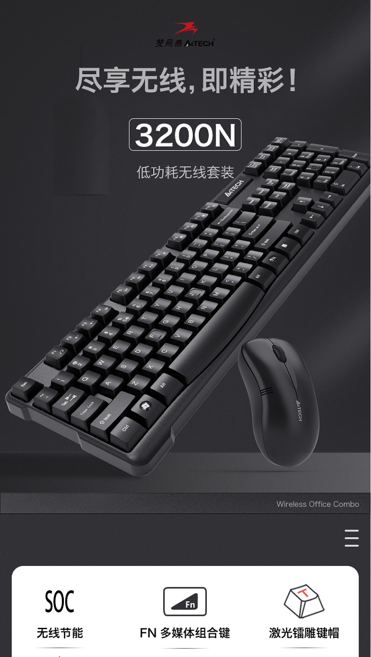 雙飛燕(A4TECH) 無線鍵鼠套裝3200N