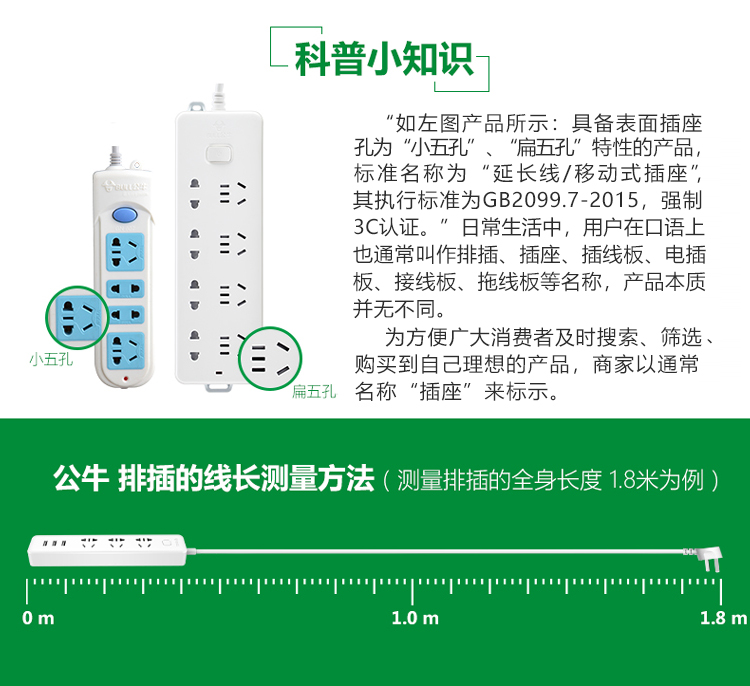 公牛(Gongniu)3孔電源插座GN-606A/5米