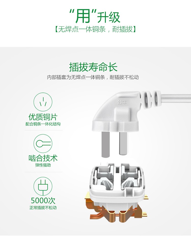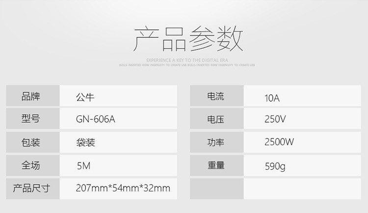 公牛(Gongniu)3孔電源插座GN-606A/5米