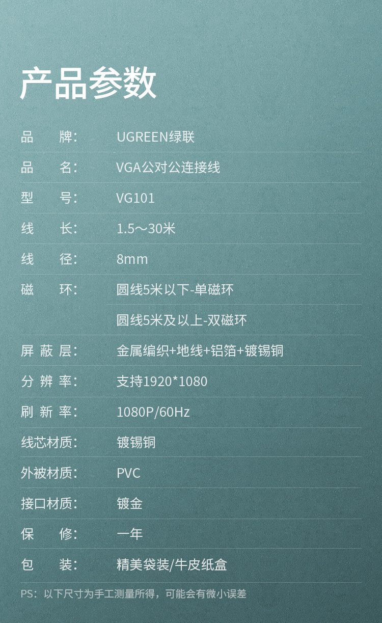 綠聯(lián)(UGREEN)工程級(jí)VGA線 延長(zhǎng)線 vga3+6銅芯11630(3米)