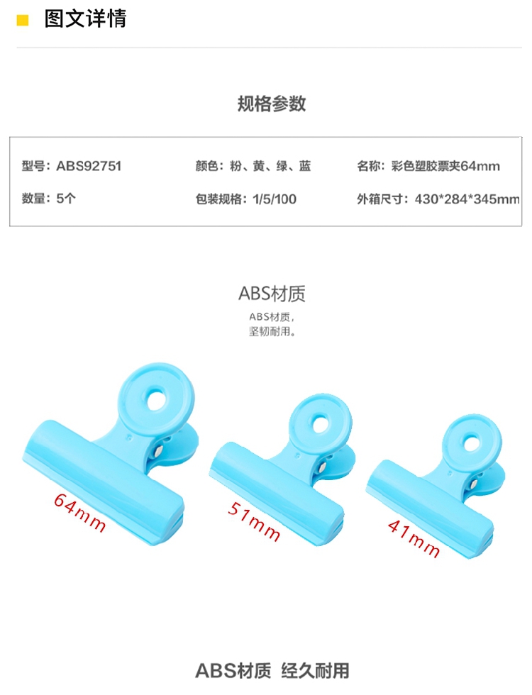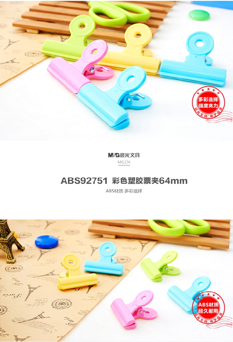 晨光(M&G) ABS92751 彩色塑膠票夾票據(jù)夾 64mm 5只袋