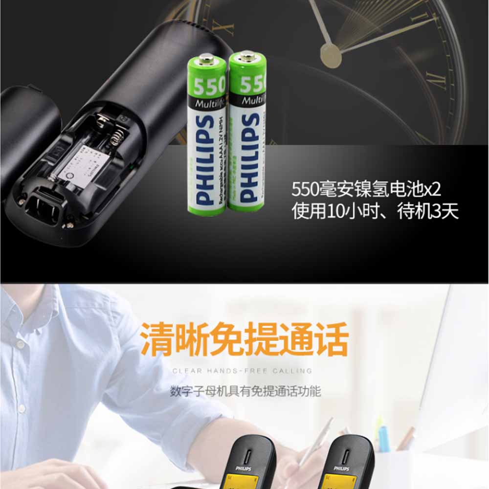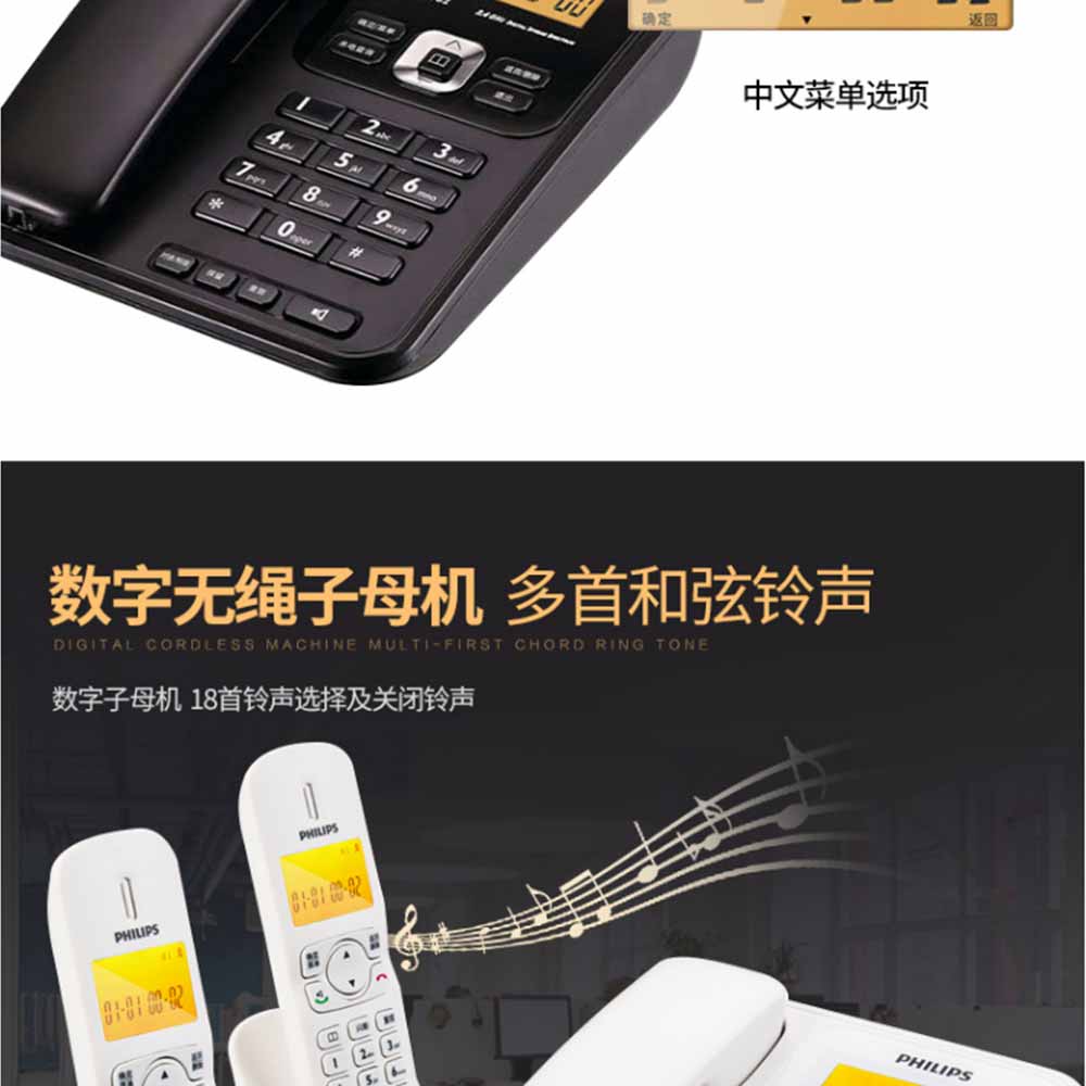飛利浦(PHILIPS)無繩電話機 無線座機 子母機 辦公家用 可擴展子機 中文菜單 雙免提 DCTG182一拖一(黑色)