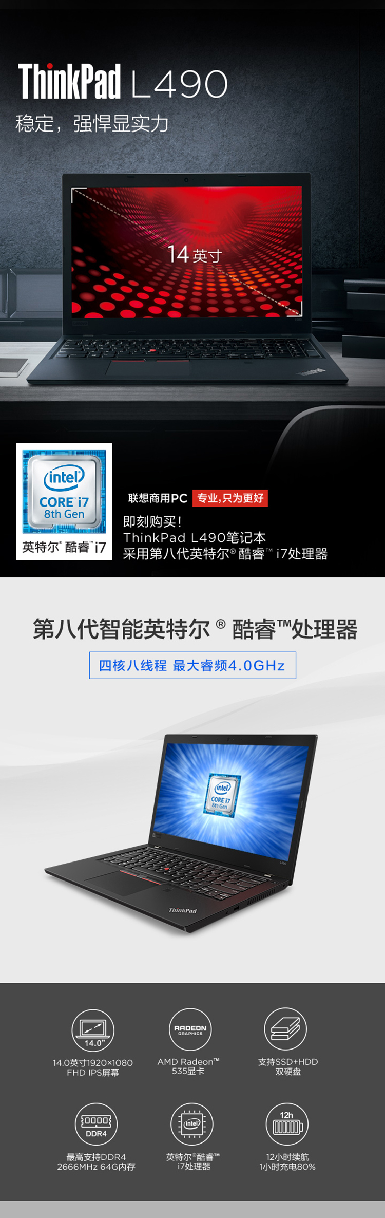 聯(lián)想(ThinkPad)筆記本電腦L490/I5-8265U/8G/1T+128G SSD