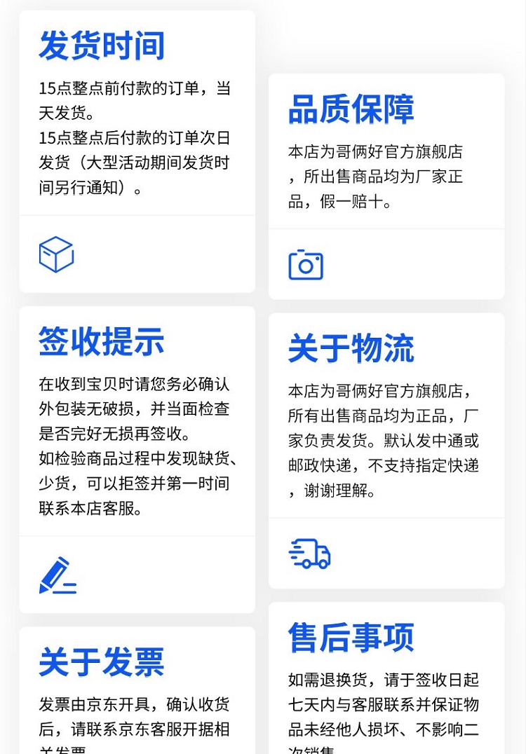 3、退貨處理周期,自接收到問題商品之日起7日之內(nèi)為您處理完成;換貨處理周期,自接收到問題商品之日起10日之內(nèi)為您處理完成。