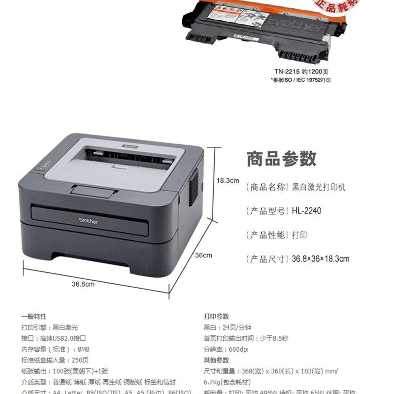 兄弟(brother) HL-2240 黑白激光打印機 24頁/分鐘