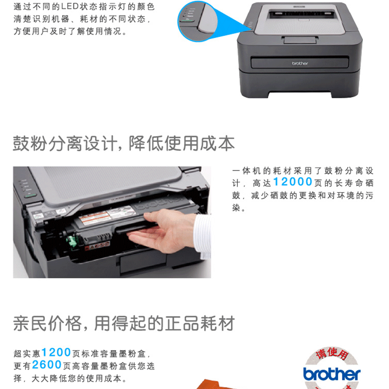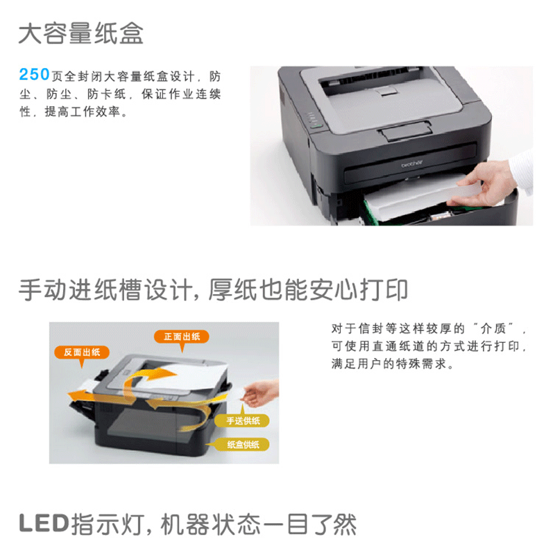 【中國有兄弟,血拼要用力】全封閉250頁大容量紙盒防塵、防潮、防卡紙,耗材鼓粉分離設計 單頁成本低又環(huán)保!手動進紙槽可打厚紙!活動詳情猛戳這里 ?