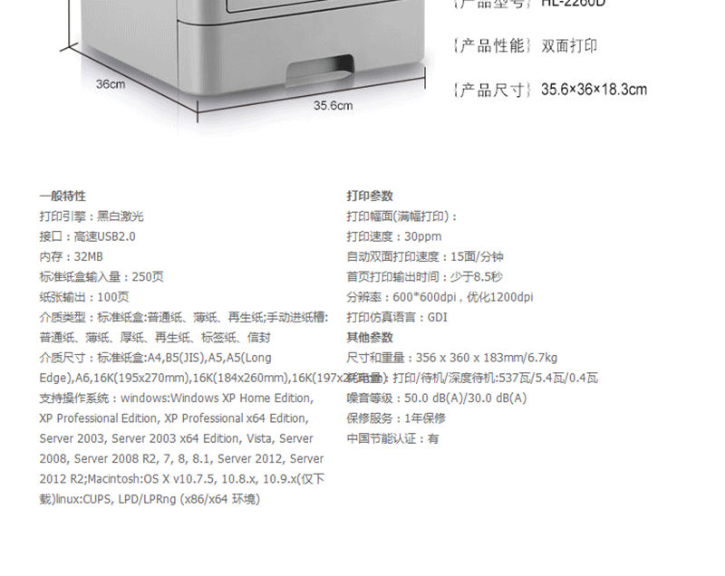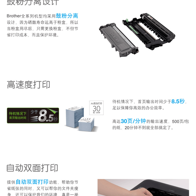 高質(zhì)量打印,高速度打印,大容量墨粉盒,自動(dòng)雙面打??!鼓粉分離!A4打印幅面! ?