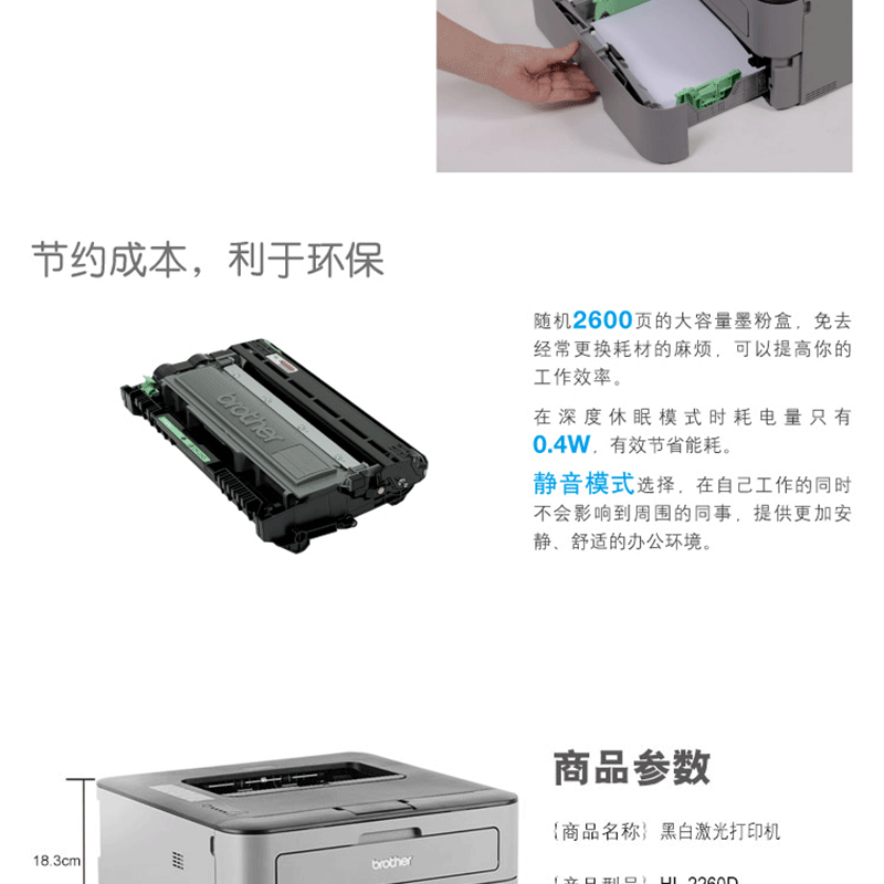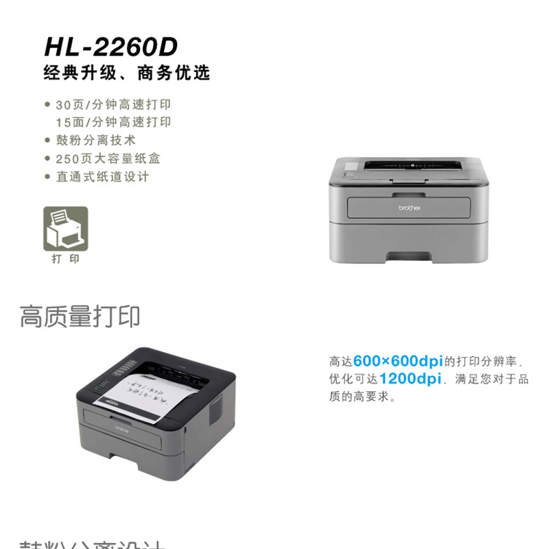 兄弟(brother) HL-2260D 黑白激光打印機(jī) A4 雙面打印