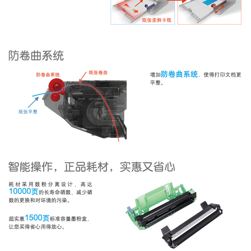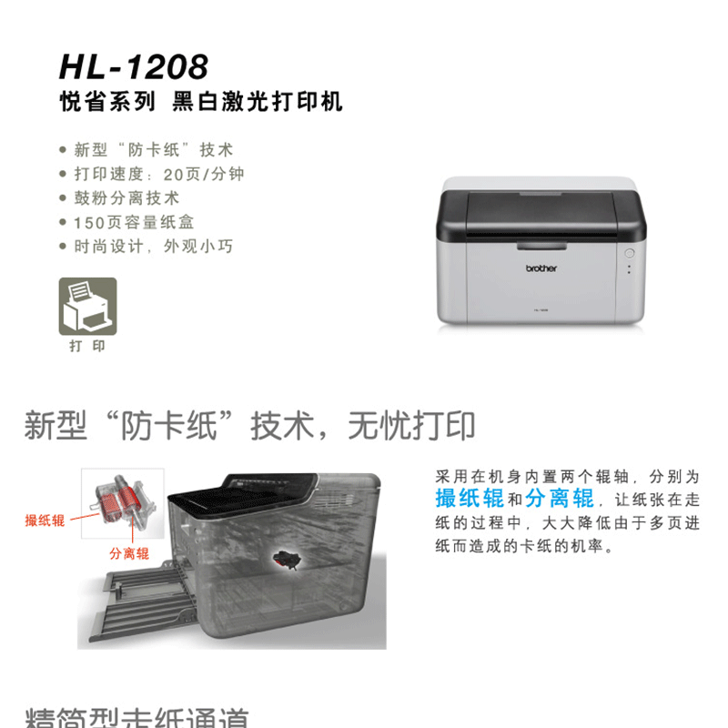 新型防卡紙技術 鼓粉分離 體積小巧 20頁/分鐘!A4打印幅面 ?