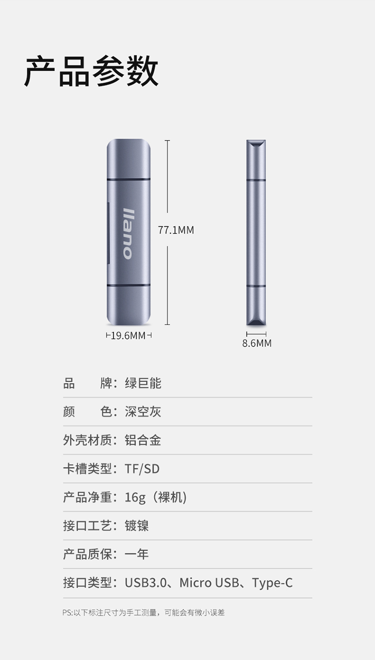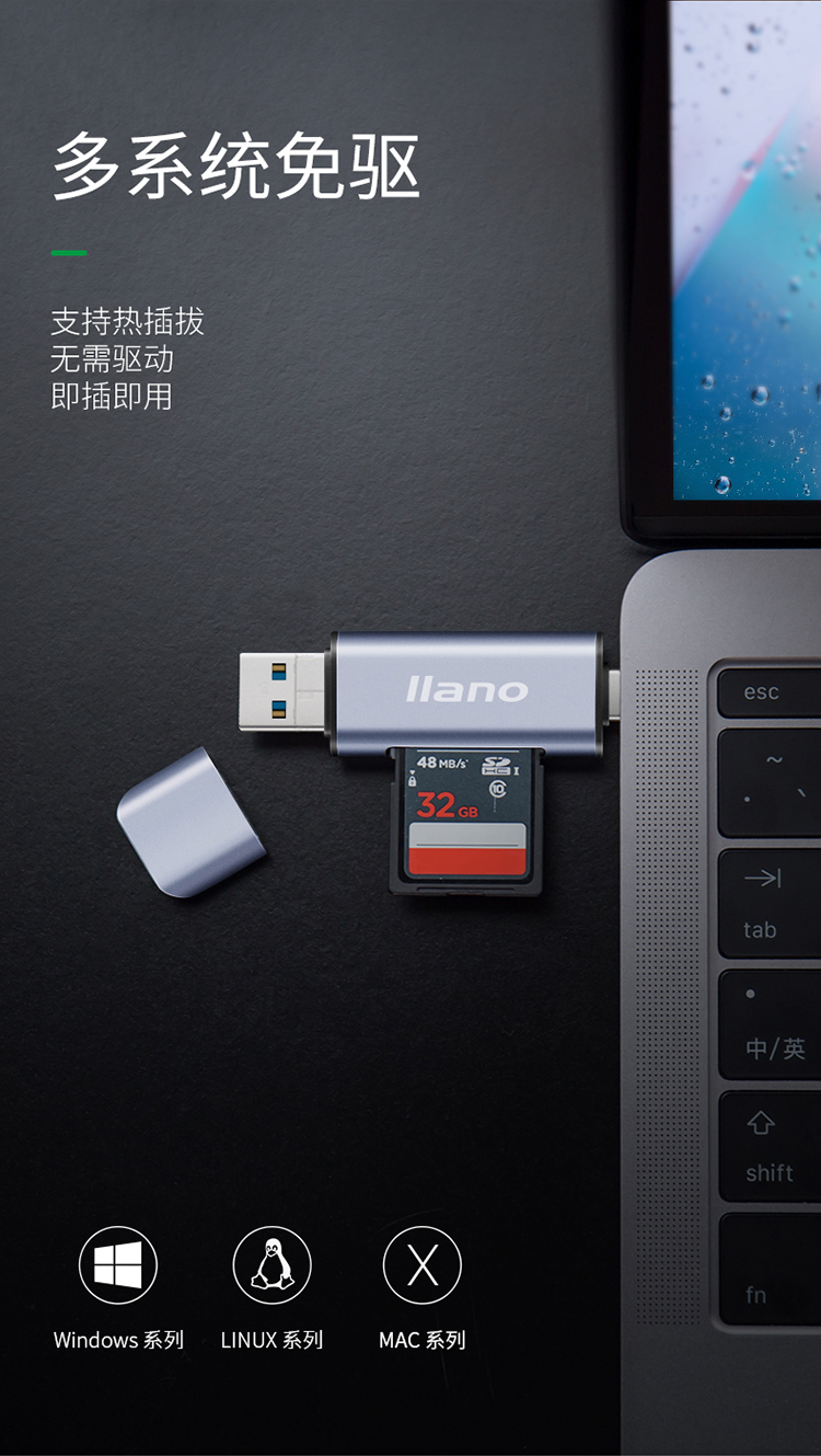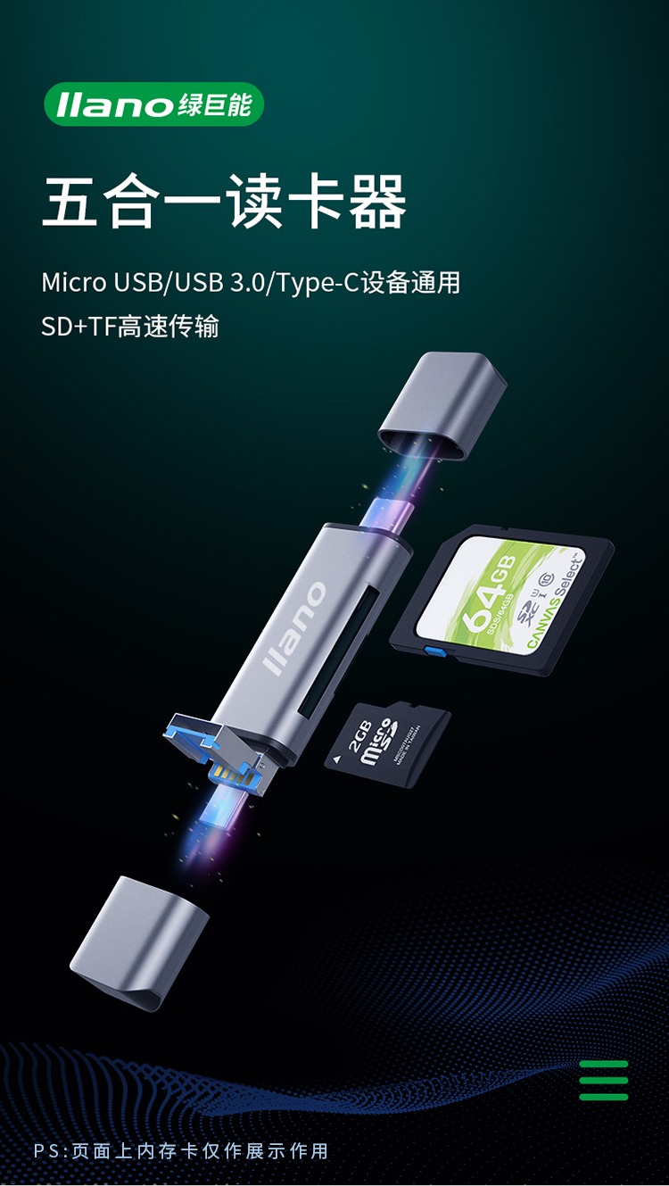 綠巨能(llano)USB3.0讀卡器 多功能五合一手機讀卡器