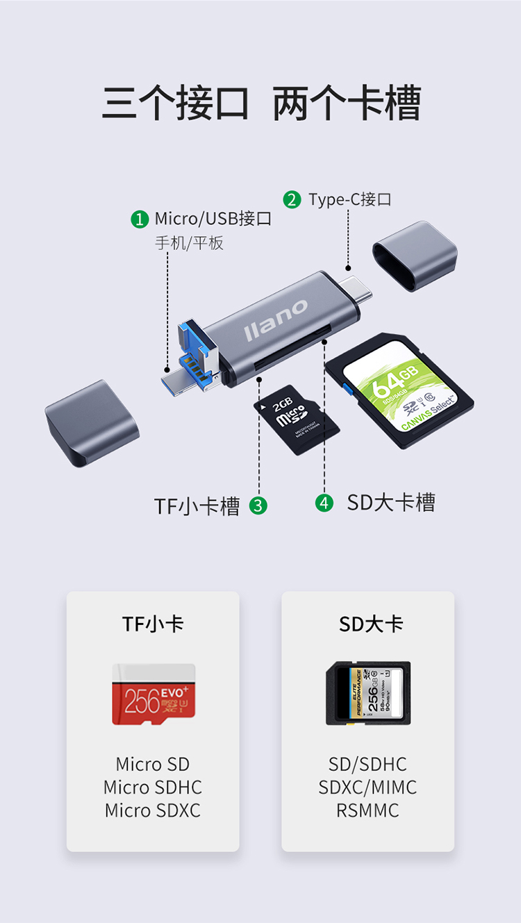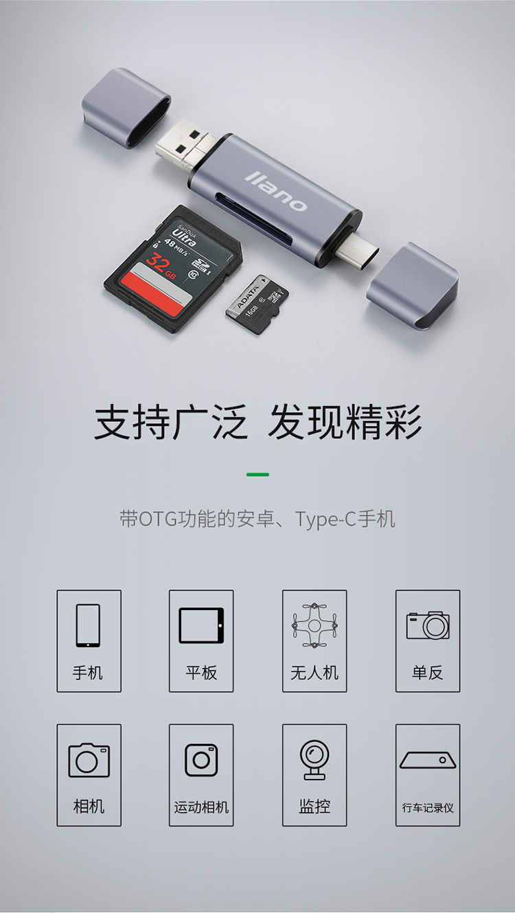 支持OTG/USB3.0/SD/Type-C/TF/MicroUSB相機讀卡器