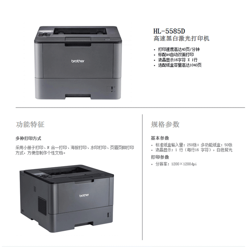 兄弟(brother) HL-5585D 黑白激光打印機 高速 自動雙面打印