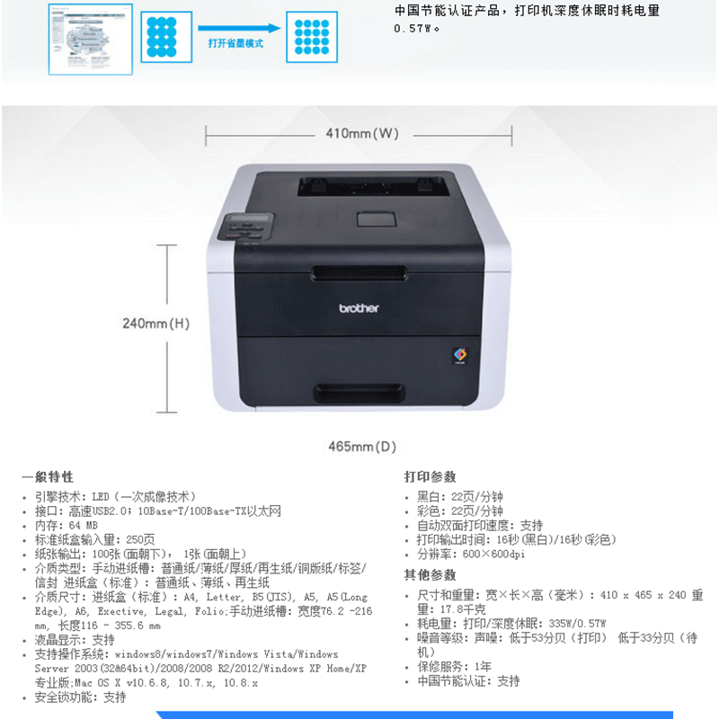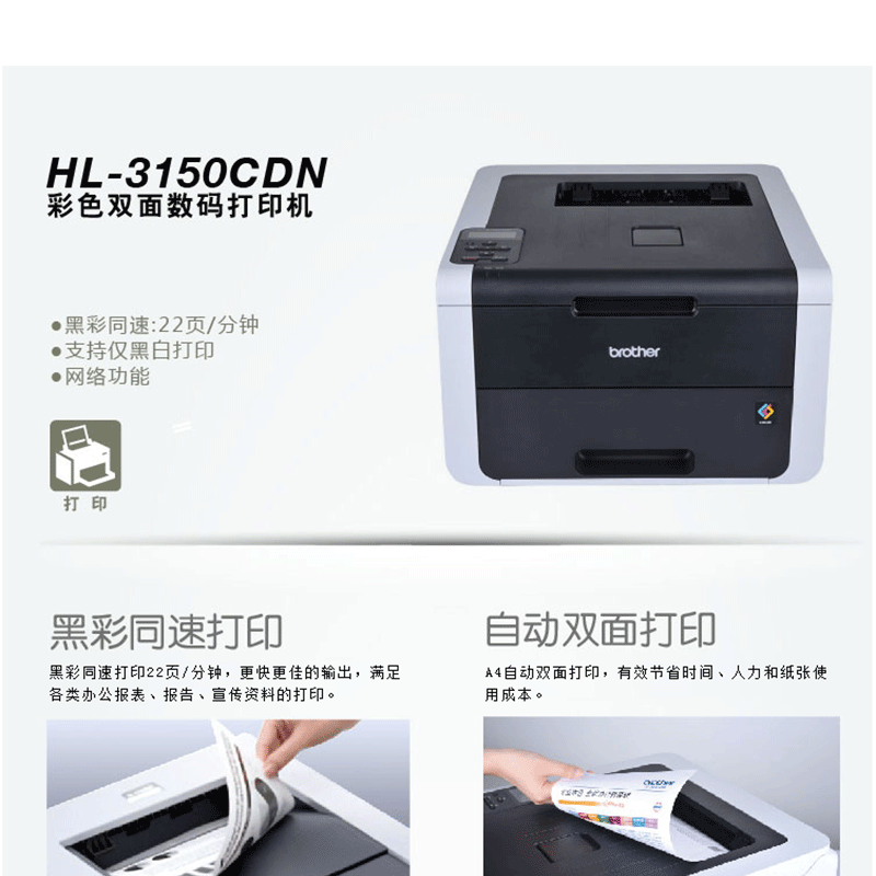 兄弟(brother) HL-3150CDN 彩色數(shù)碼打印機(jī) 黑彩同速22頁/分鐘