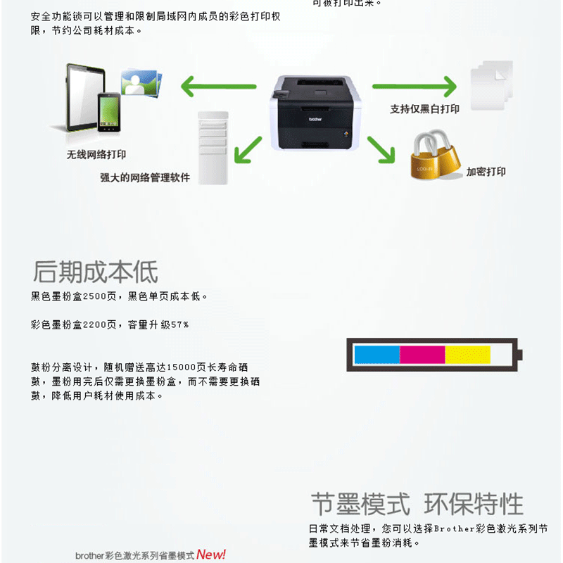 有線網(wǎng)絡(luò) 自動雙面打印 A4打印幅面 鼓粉分離 ?