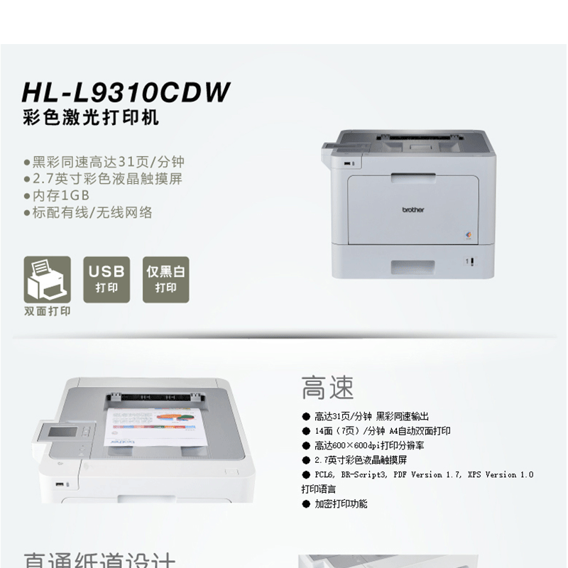 兄弟(brother) HL-L9200CDW 彩色激光打印機(jī) 1.8英寸彩色觸摸式液晶屏