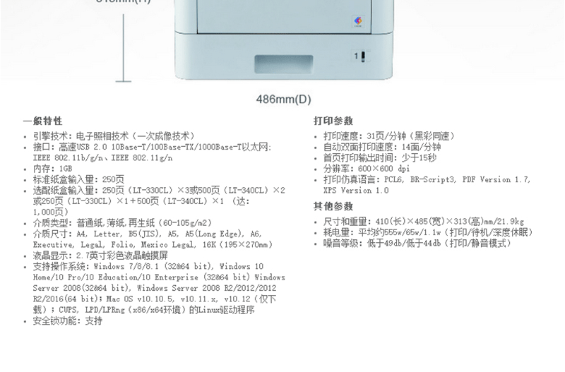 無線wifi打印,自動(dòng)雙面打印,黑彩同速30頁(yè)/分鐘,雙面打印14面/分鐘 ?