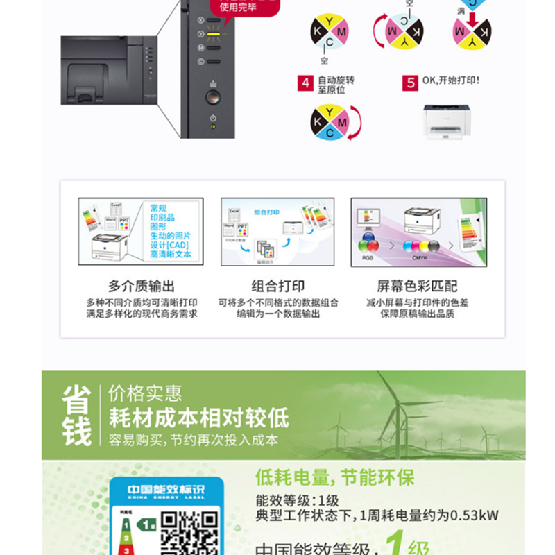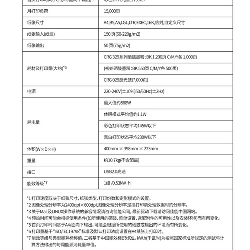 佳能(Canon) LBP7010C 彩色激光打印機 USB連接 A4幅面