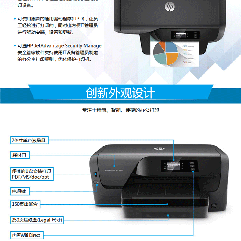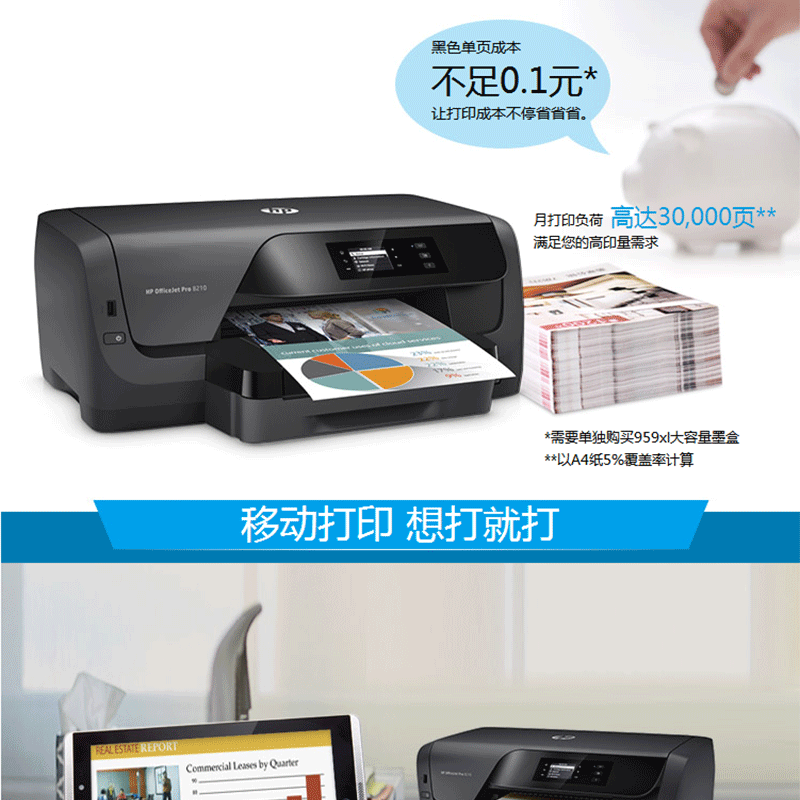 惠普(HP) OfficeJet Pro 8210 彩色噴墨打印機(jī)(自動(dòng)雙面/無(wú)線直連)