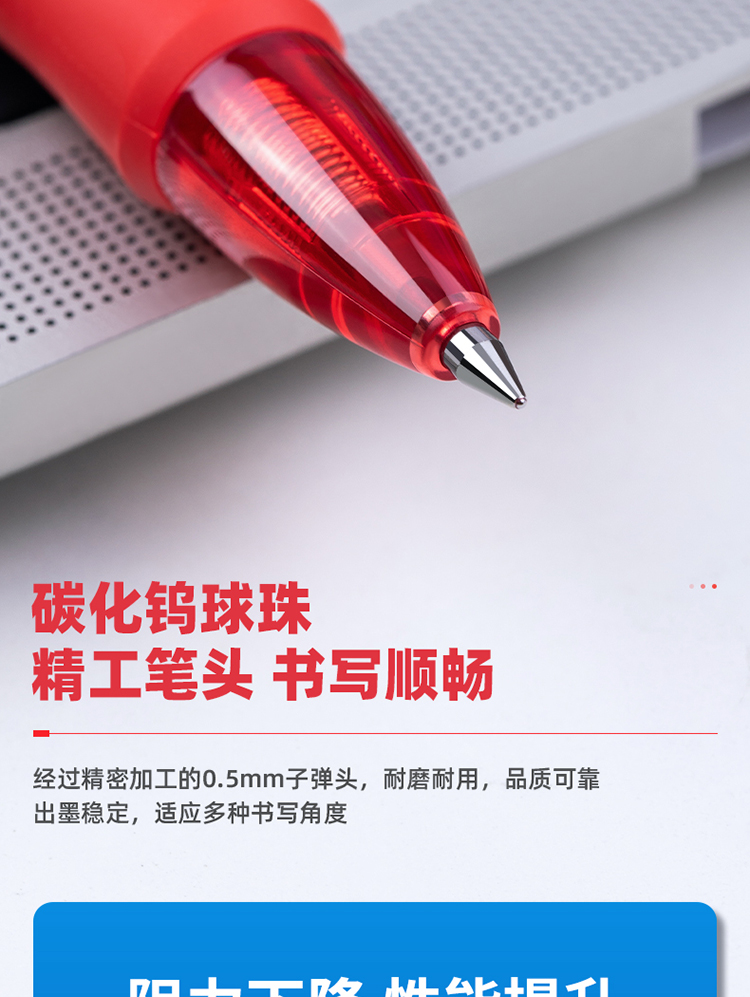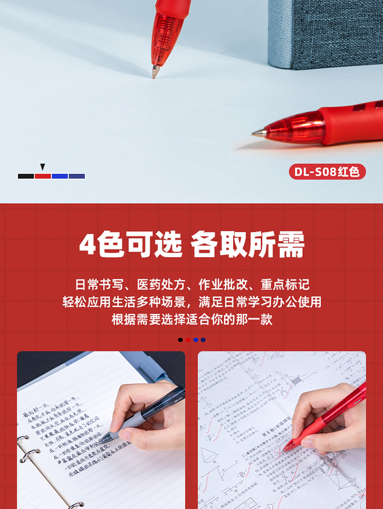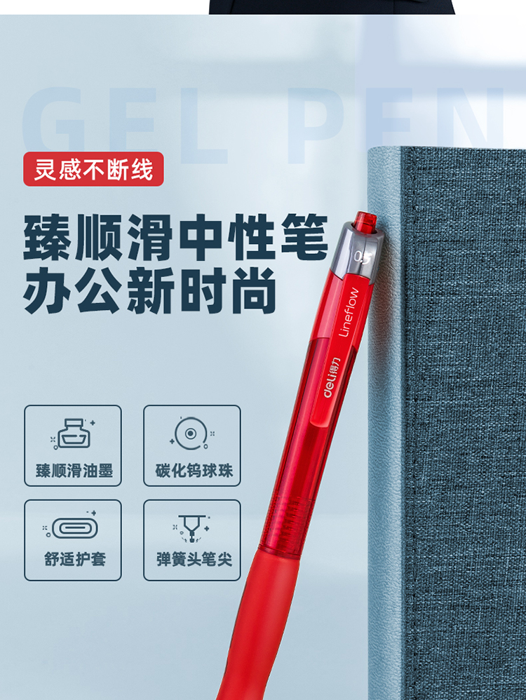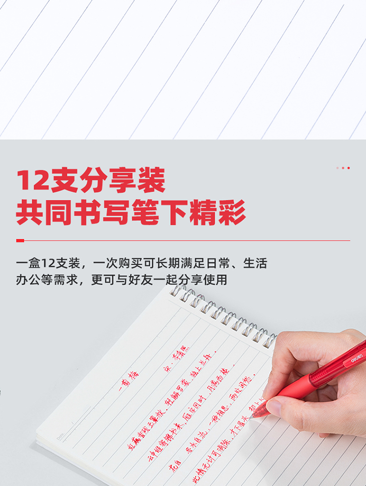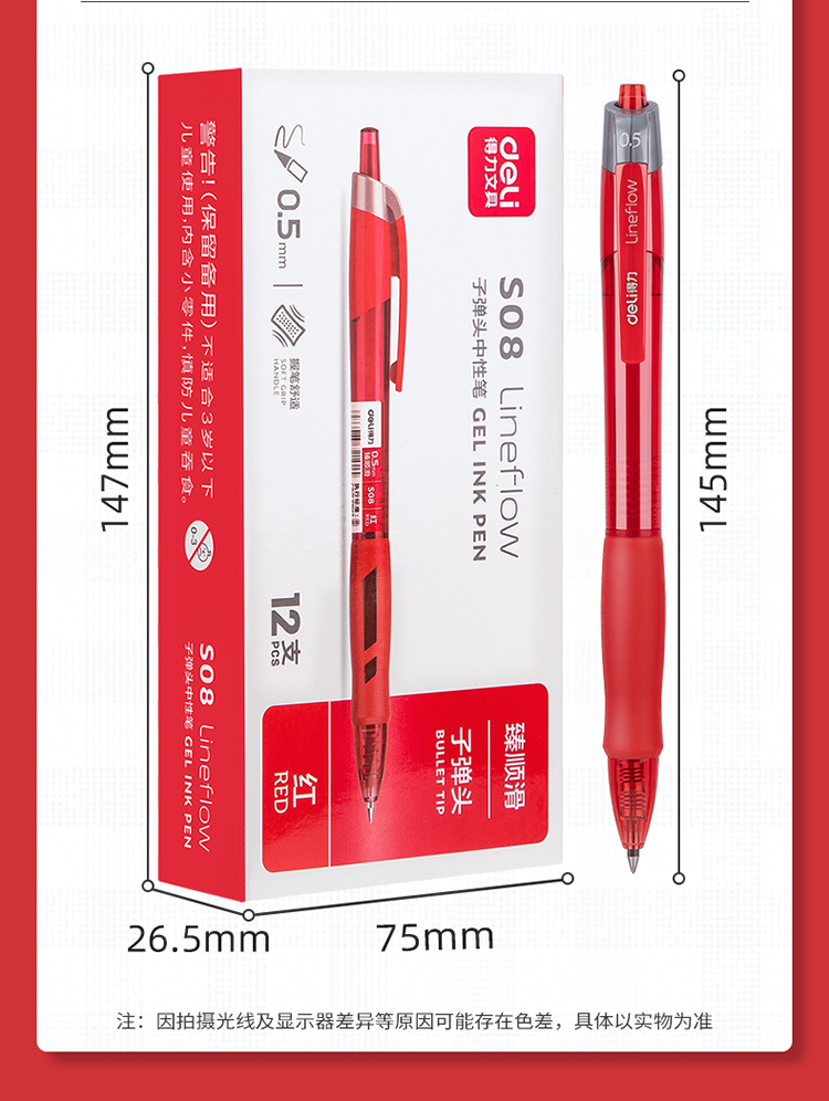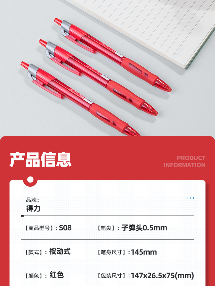 得力(deli)S08 按動(dòng)子彈頭中性筆 紅色簽字筆 0.5mm 12支/盒