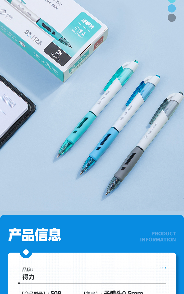 得力(deli)S08 按動(dòng)子彈頭中性筆 藍(lán)色簽字筆 0.5mm 12支/盒