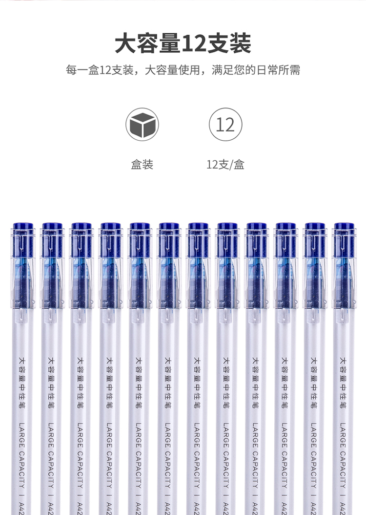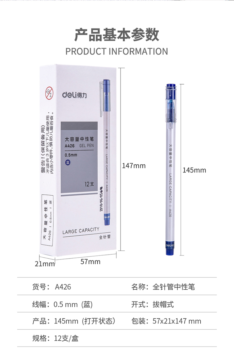 得力(deli)A426 全針管中性筆 藍(lán)色簽字筆 0.5mm 12支/盒