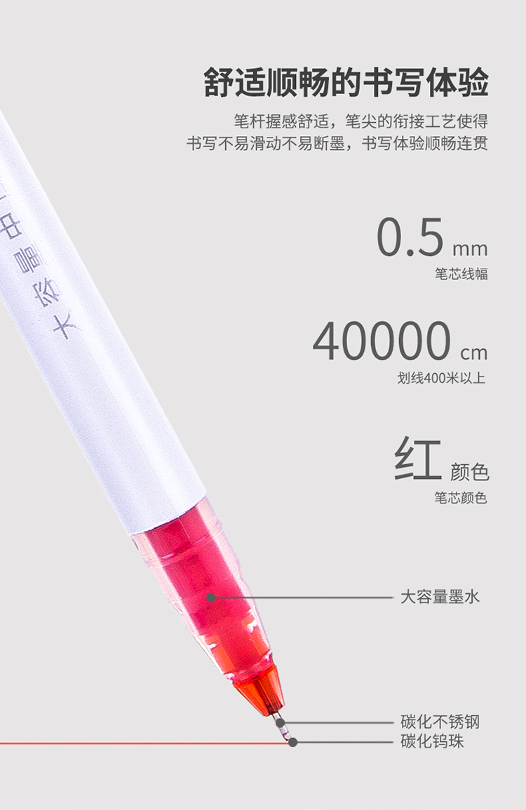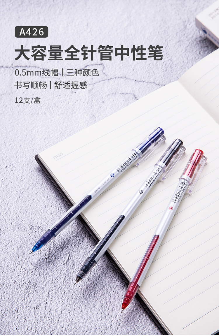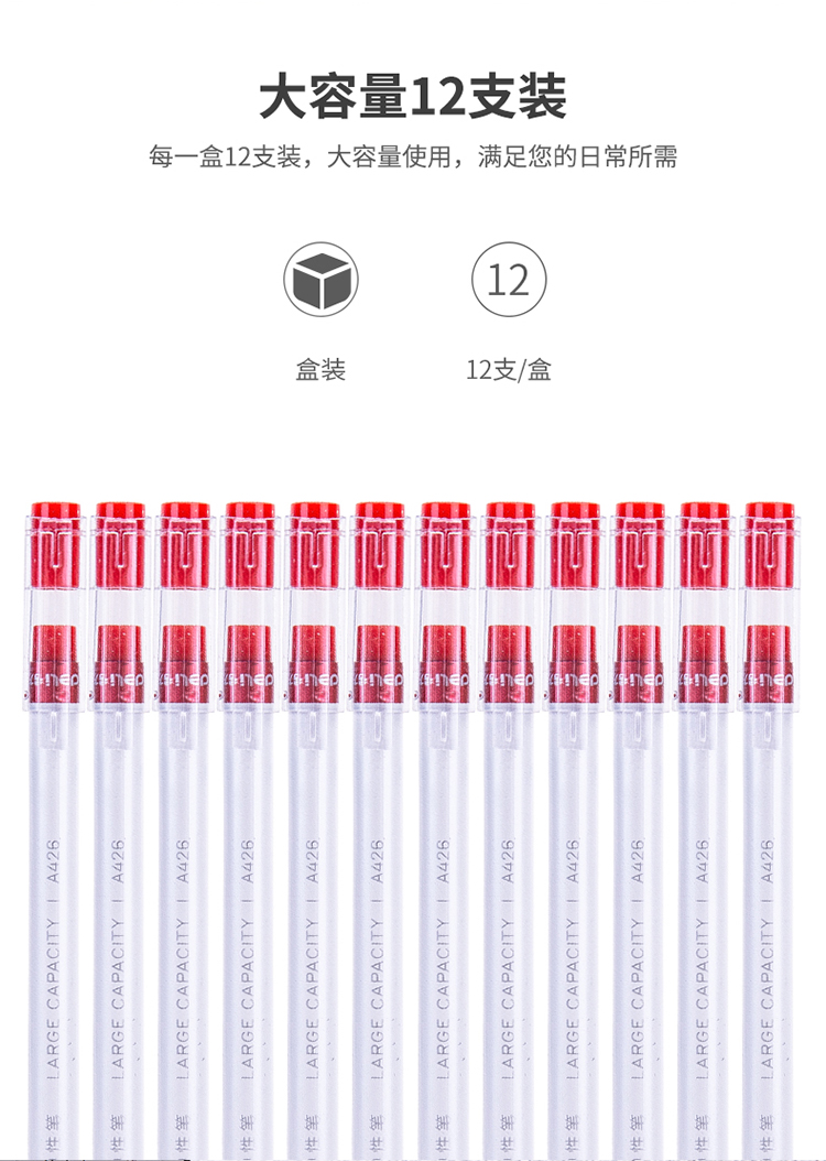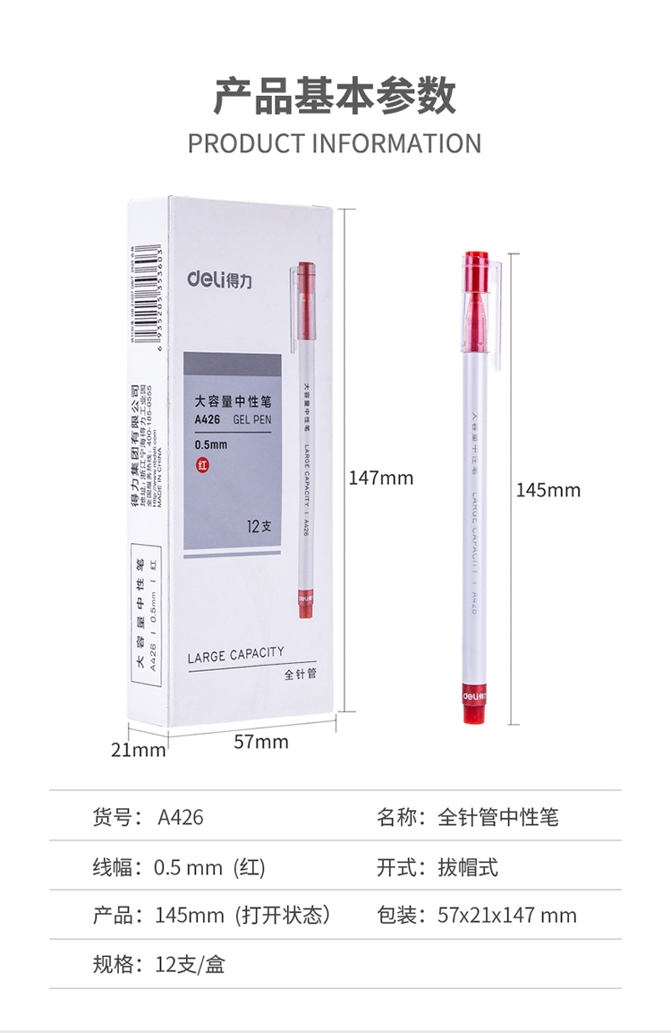 得力(deli)A426 全針管中性筆 紅色簽字筆 0.5mm 12支/盒