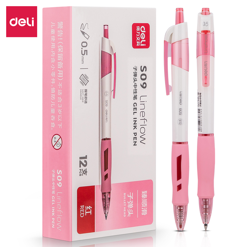 得力(deli)S09 按動(dòng)子彈頭中性筆 紅色簽字筆 0.5mm 12支/盒