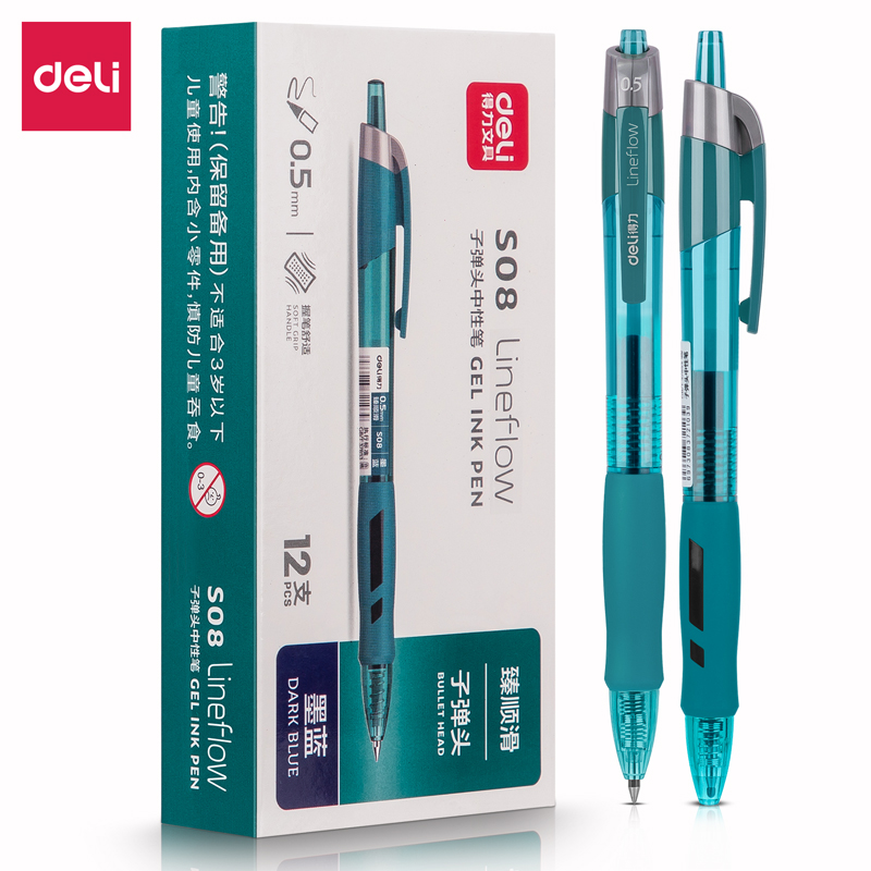 得力(deli)S08 按動(dòng)子彈頭中性筆 墨藍(lán)色簽字筆 0.5mm 12支/盒