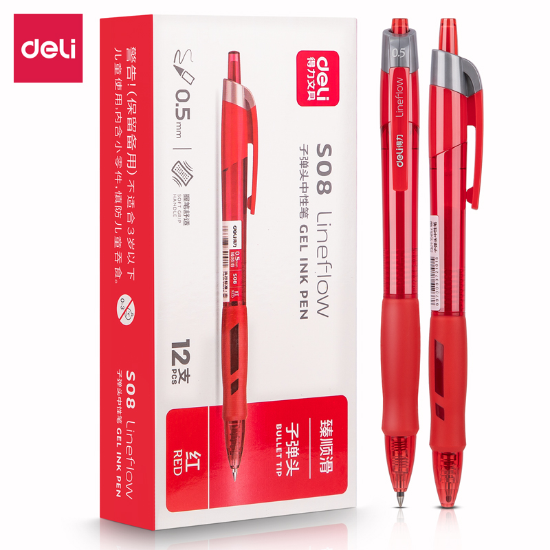 得力(deli)S08 按動(dòng)子彈頭中性筆 紅色簽字筆 0.5mm 12支/盒
