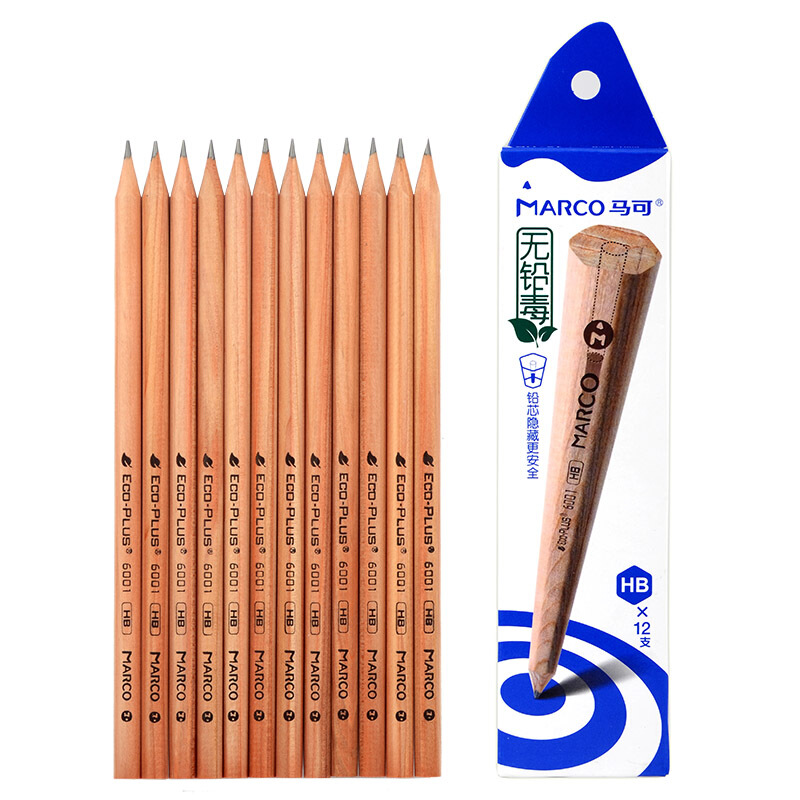 馬可(Marco) 6001-12CB 書寫鉛筆 原木色六角桿(HB)