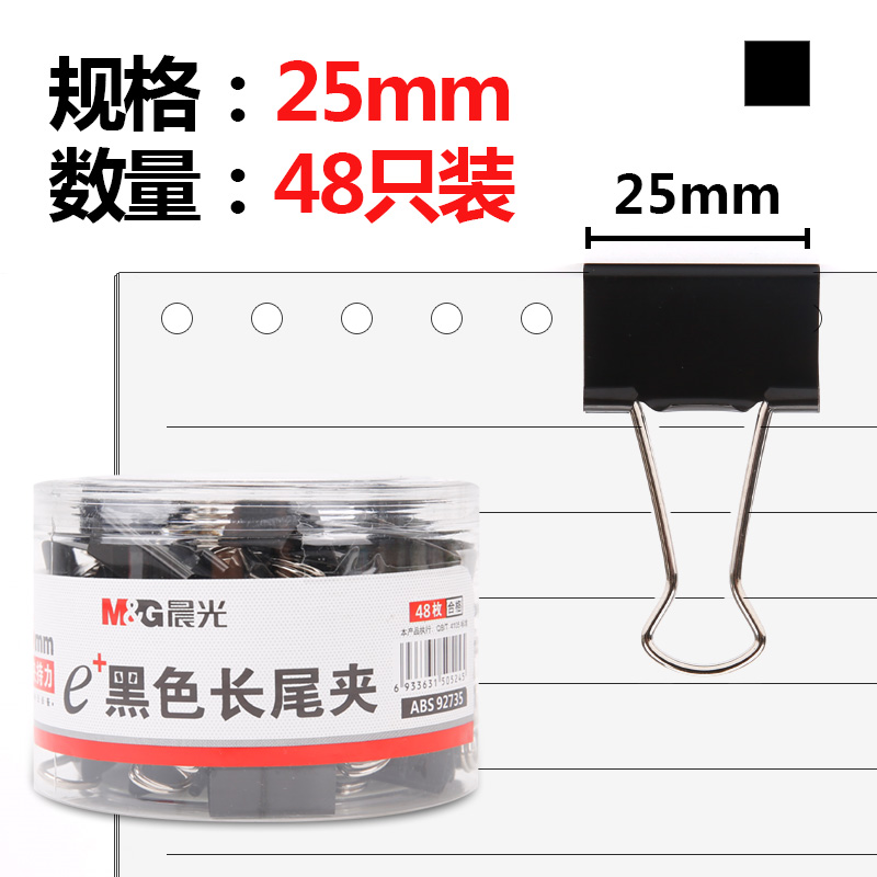 晨光(M&G) Eplus 長尾夾/長尾夾票夾 黑色(4#ABS92735/25MM 48枚/筒)
