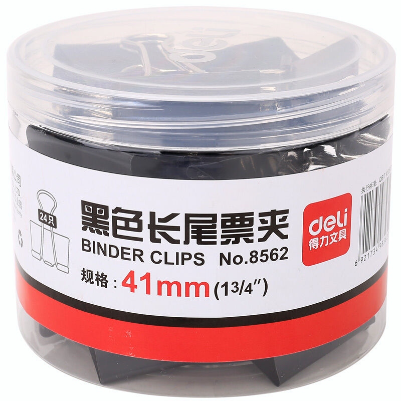 得力(deli) 8562 2#黑色長尾夾/長尾票夾41mm 24只/筒 黑色