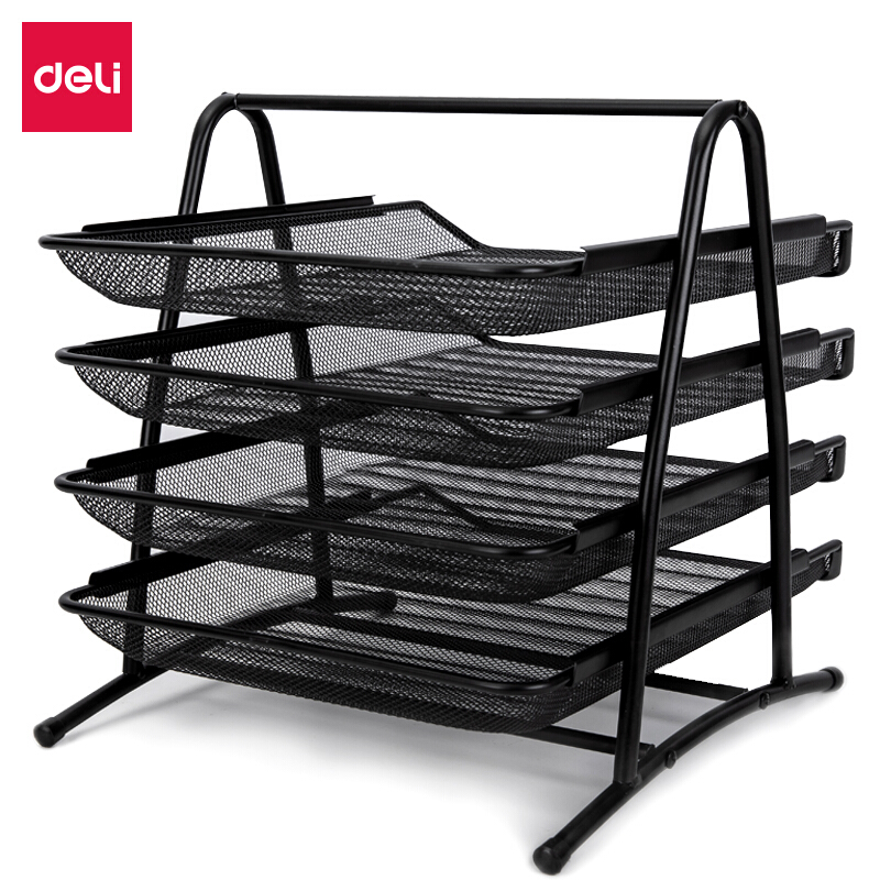 得力(deli)黑色金屬四層文件盤9184