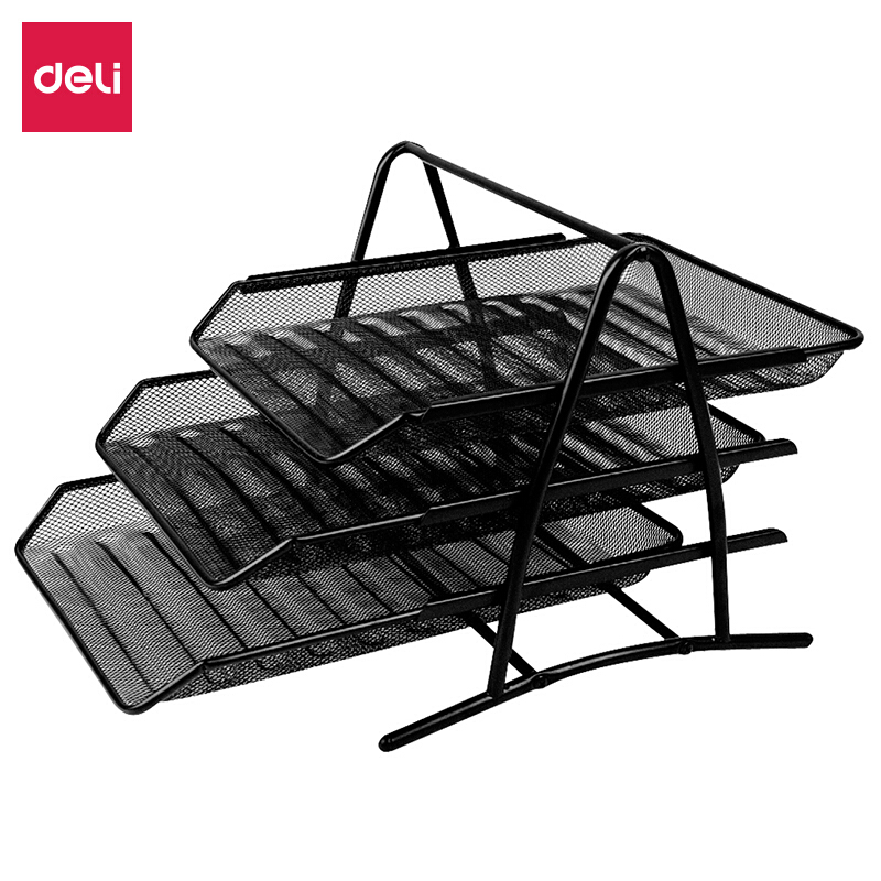 得力(deli) 9181 高品質(zhì)商務(wù)三層金屬文件盤座 黑色