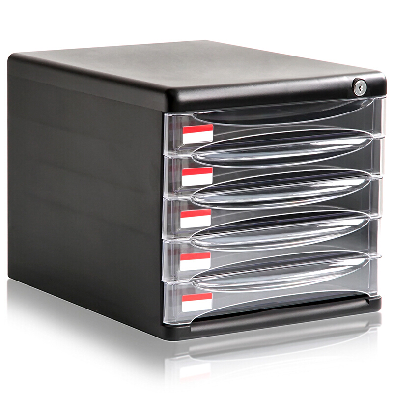 得力(deli) 9795 五層塑料文件柜(透明抽屜帶鎖)黑色