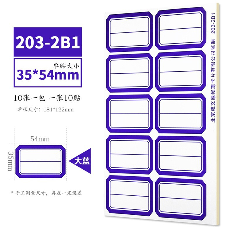 成文厚 口取紙 不干膠標簽紙 口曲紙 10張/包(203-1B1 藍色)